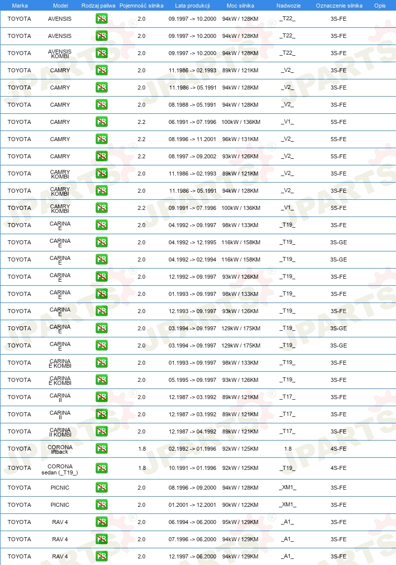 | 32 04 175 | ROLKA NAPINAJĄCA PASEK ROZRZĄDU | JAPAN LINE | 75,28PLN | dostępny | Szczegóły | |