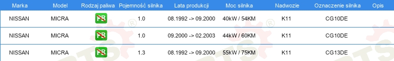 Informacje o części
