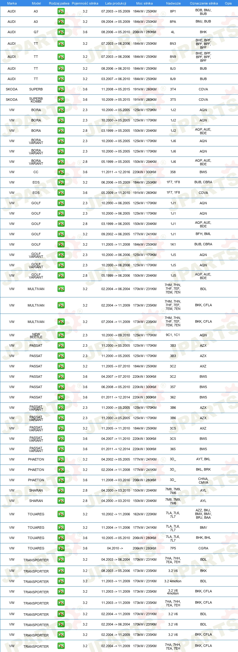 Komplet łańcucha rozrządu