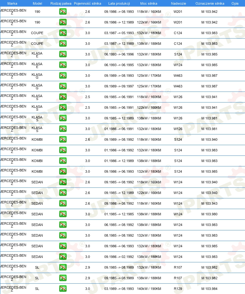 | Wymiary łańcucha napędu rozrządu: | G68WN |