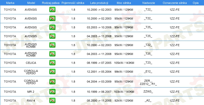 Komplet łańcucha rozrządu