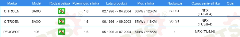 Informacje o części