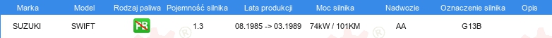 Informacje o części