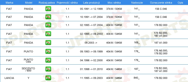 Informacje o części