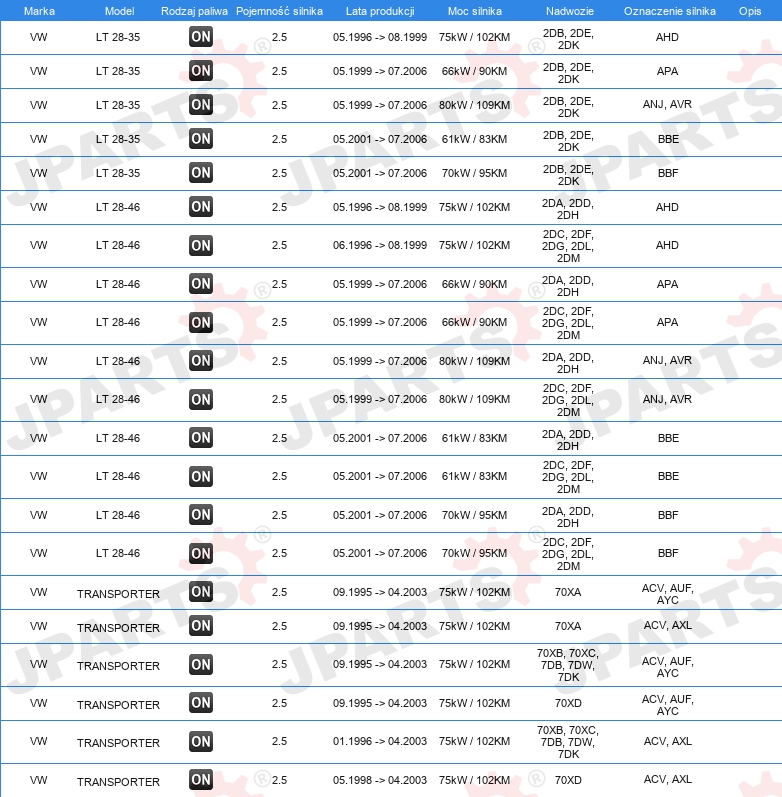 KOMPLET ROZRZĄDU Z POMPĄ WODY