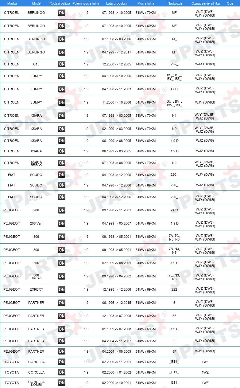 KOMPLET ROZRZĄDU Z POMPĄ WODY