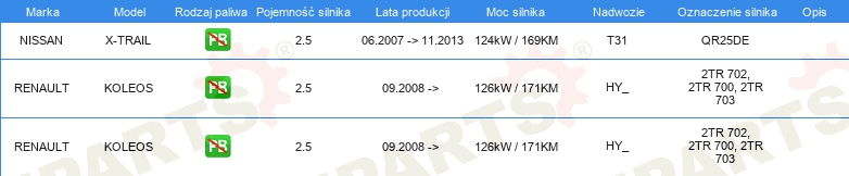 Informacje o części