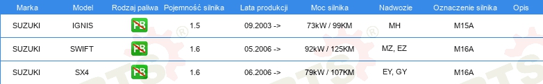 Informacje o części