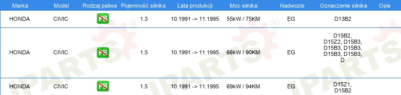 Informacje o części