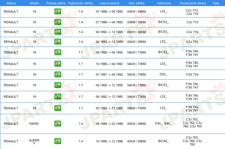 Informacje o części