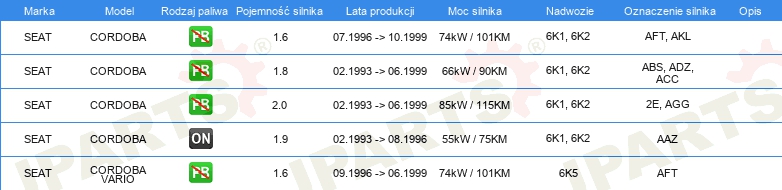 Informacje o części