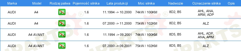 Informacje o części