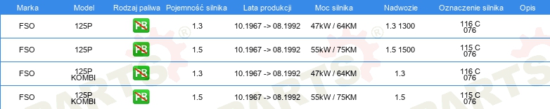 Informacje o części