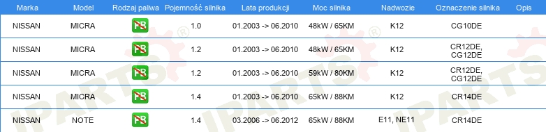 Informacje o części