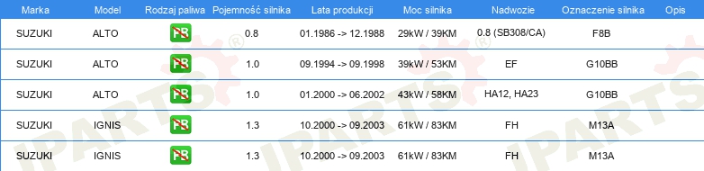 Informacje o części
