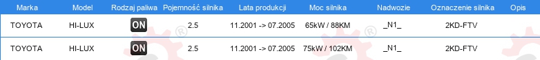 Dodatkowe informacje katalogowe