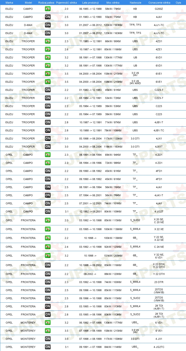 | Pojazd z kierownicą po lewej /prawej stronie: | dla pojazdów z kierownicą z lewej / prawej strony |