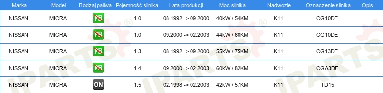 Informacje o części