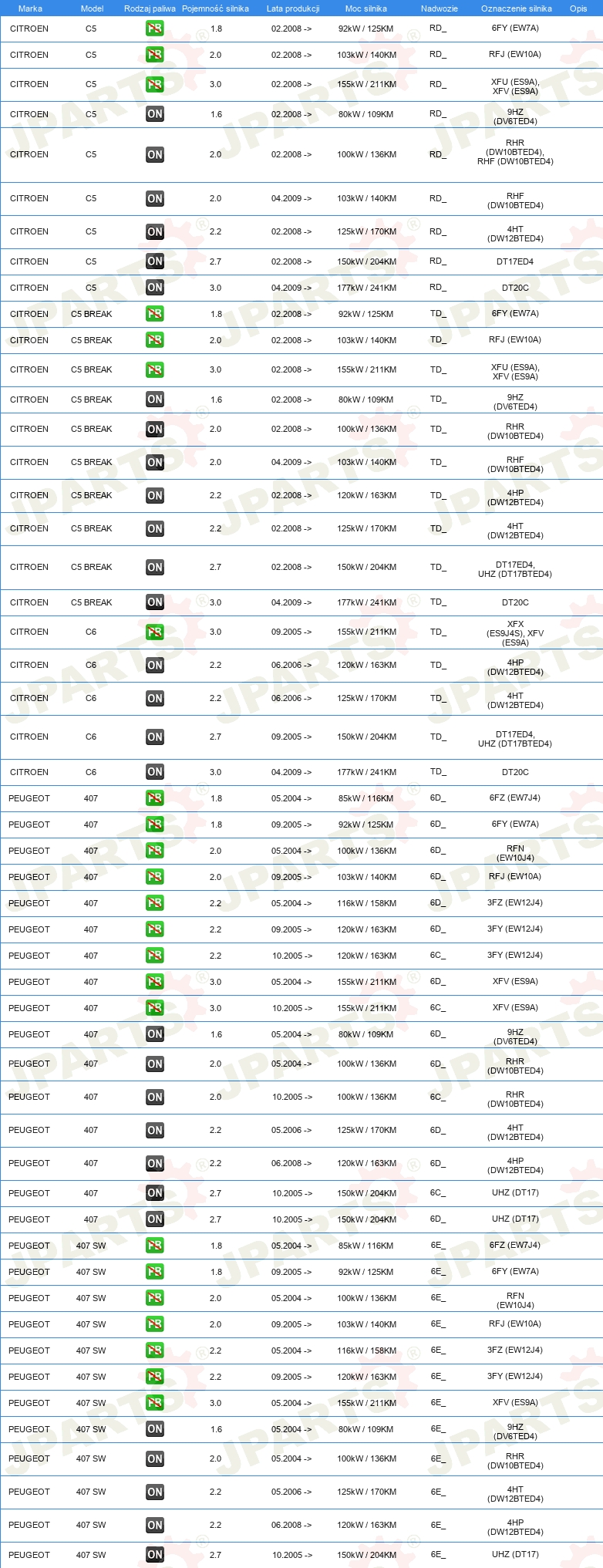 | Strona zabudowy: | z tyłu |