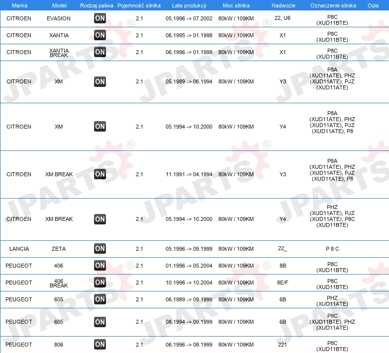 | Artykuł uzupełniający / informacja uzupełniająca: | bez uszczelki głowicy cylindra |