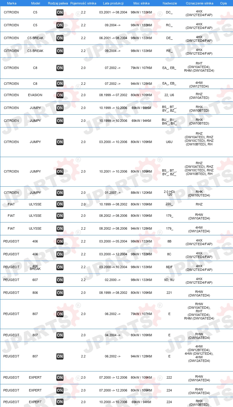 | Artykuł uzupełniający / informacja uzupełniająca: | bez uszczelki głowicy cylindra |