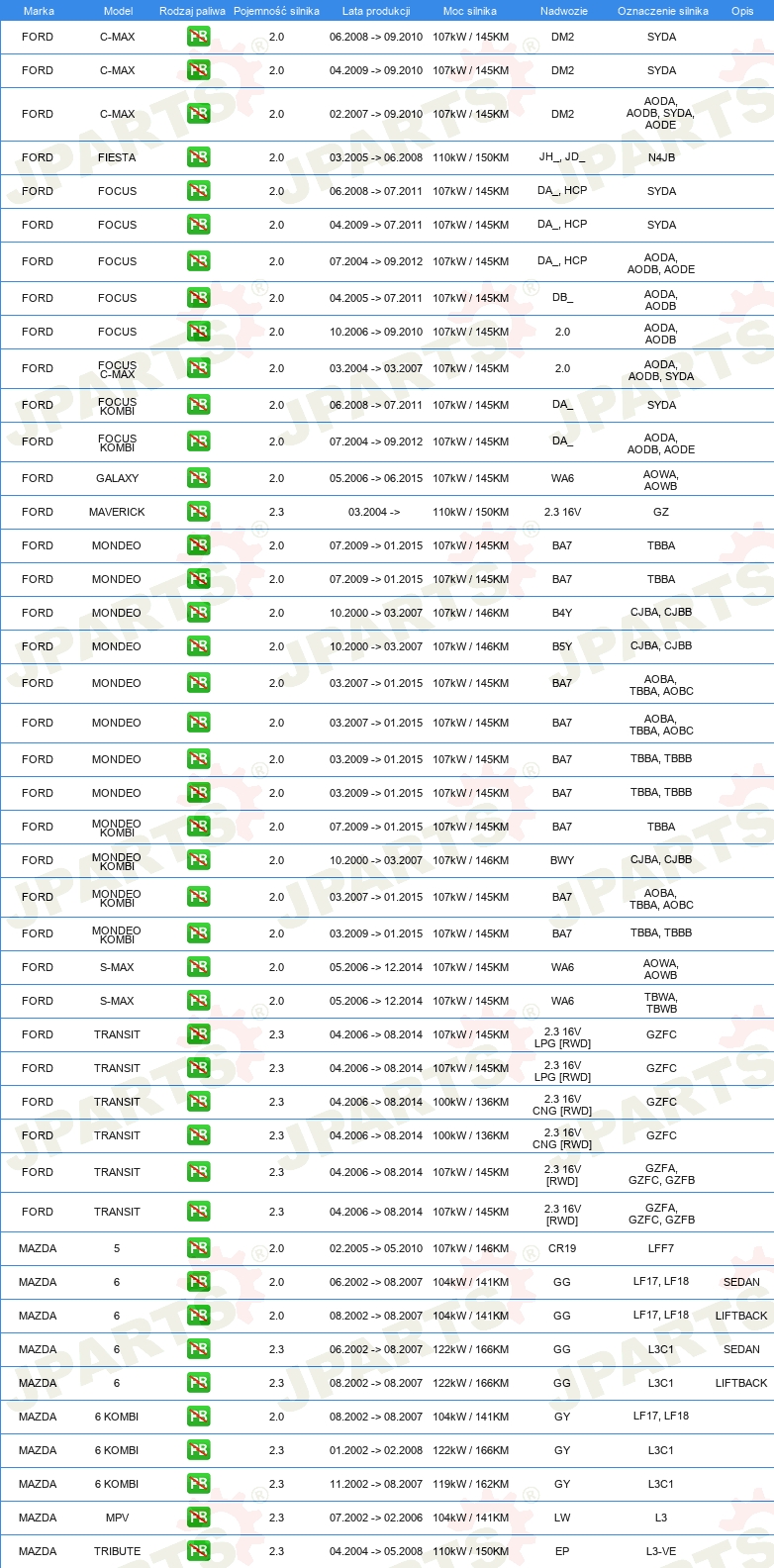 KOMPLET USZCZELEK GÓRA SILNIKA