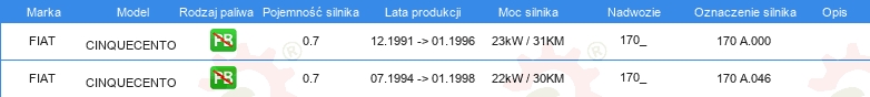 Dodatkowe informacje katalogowe