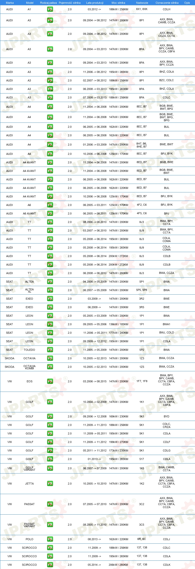KOMPLET USZCZELEK GÓRA SILNIKA