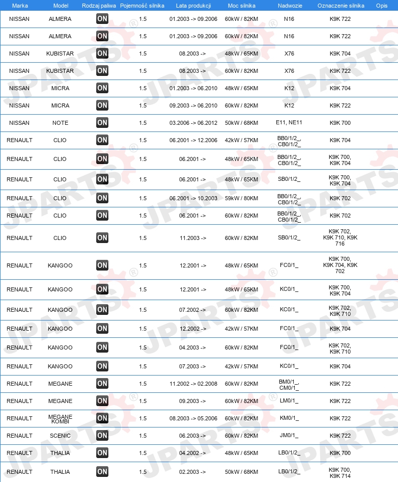 KOMPLET USZCZELEK GÓRA SILNIKA