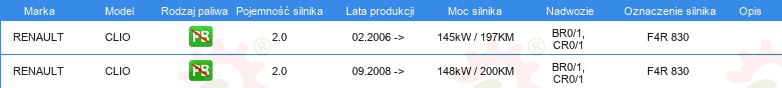 KOMPLET USZCZELEK GÓRA SILNIKA