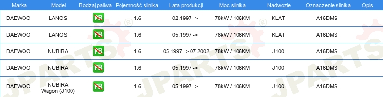 | Artykuł uzupełniający / informacja uzupełniająca: | z wałkiem rozrządu z pierżcieniami uszczelniającymi |