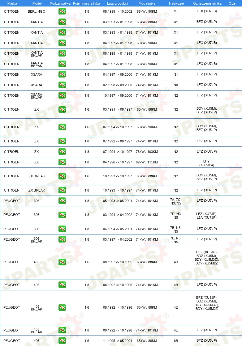 | Artykuł uzupełniający / informacja uzupełniająca: | z wałkiem rozrządu z pierżcieniami uszczelniającymi |