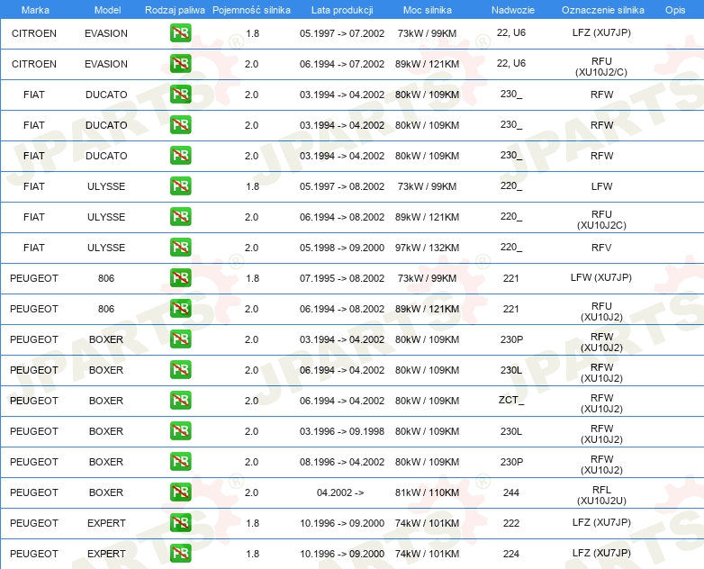 | Artykuł uzupełniający / informacja uzupełniająca: | z wałkiem rozrządu z pierżcieniami uszczelniającymi |