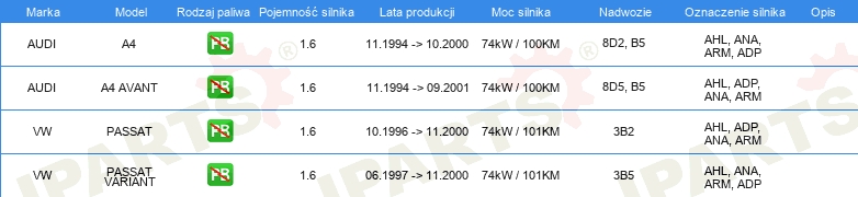 | Artykuł uzupełniający / informacja uzupełniająca: | z wałkiem rozrządu z pierżcieniami uszczelniającymi |