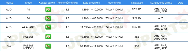 | Artykuł uzupełniający / informacja uzupełniająca: | z wałkiem rozrządu z pierżcieniami uszczelniającymi |