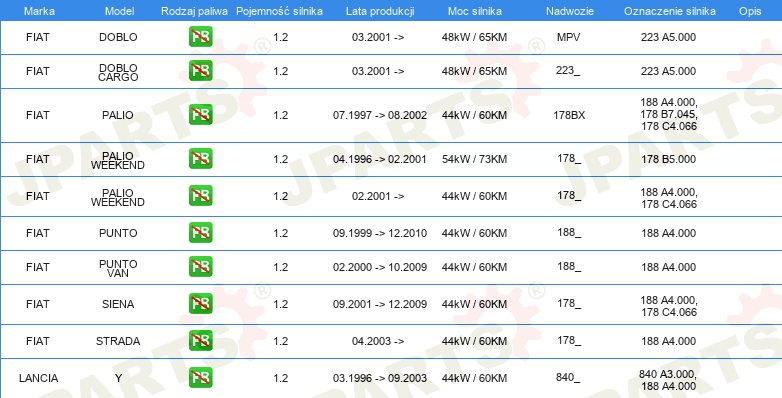 Informacje o części