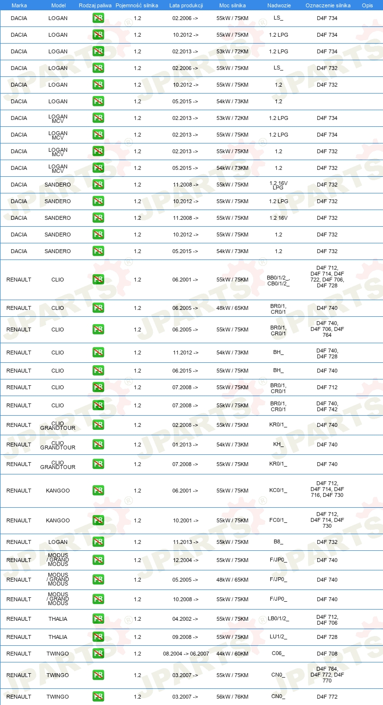 KOMPLET USZCZELEK GÓRA SILNIKA
