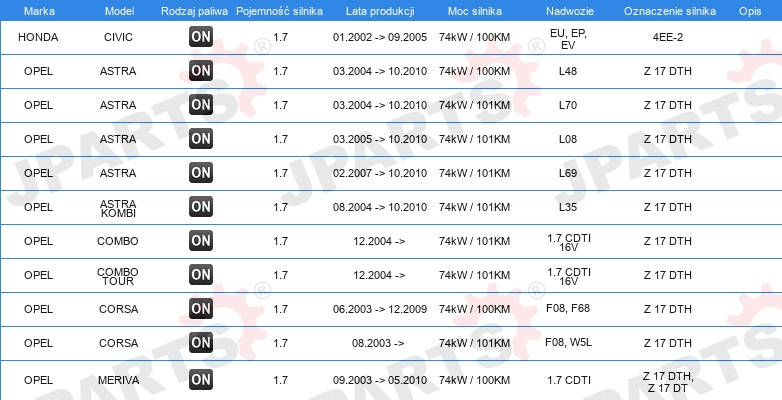 | Artykuł uzupełniający / informacja uzupełniająca: | bez uszczelki głowicy cylindra |