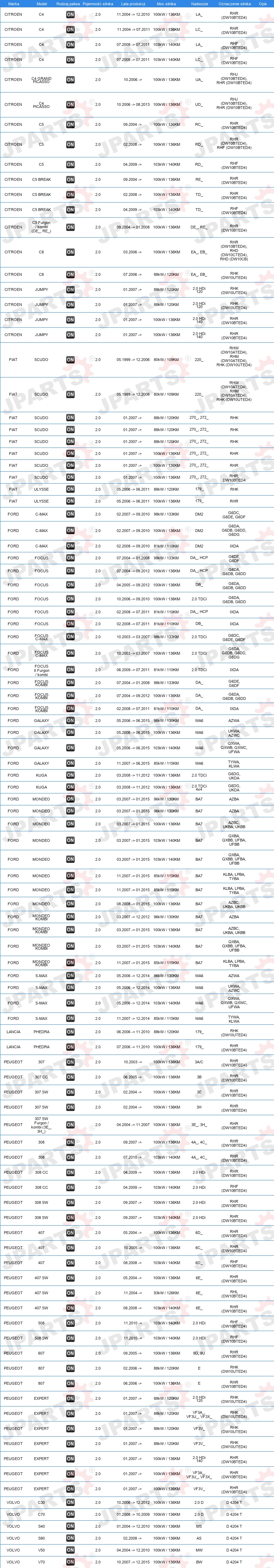 | Artykuł uzupełniający / informacja uzupełniająca: | bez uszczelki głowicy cylindra |