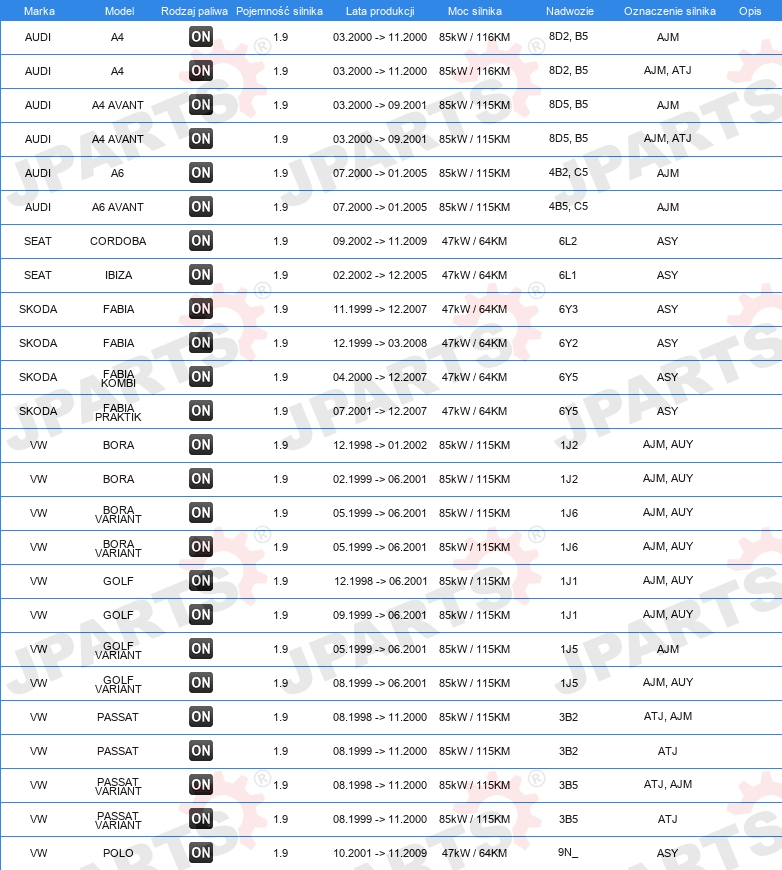 | Artykuł uzupełniający / informacja uzupełniająca: | bez uszczelki głowicy cylindra |