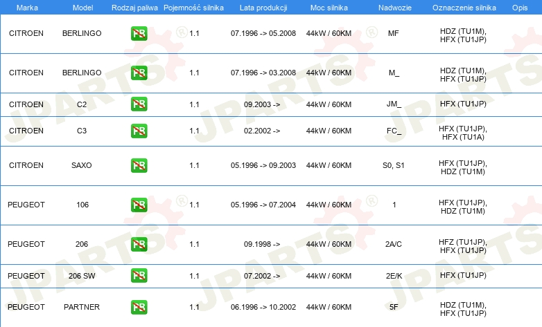 Informacje o części