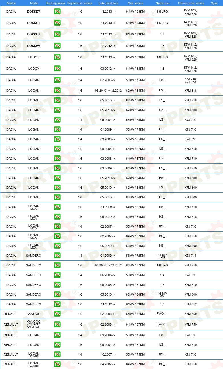 KOMPLET USZCZELEK GÓRA SILNIKA