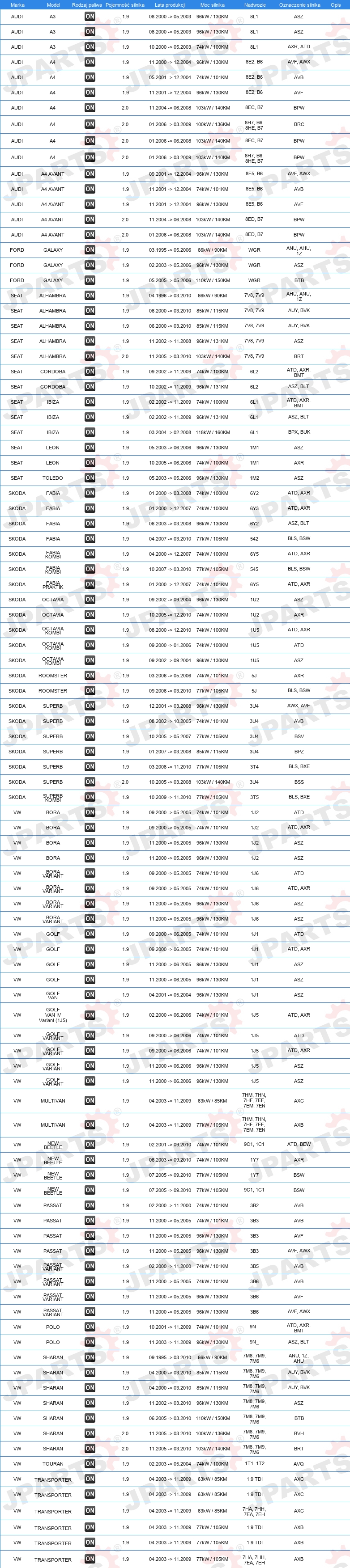 | Zalecane rozszerzenie naprawy patrz lista dodatków: | Cena za 1 sztukę, należy kupić 2 sztuki |