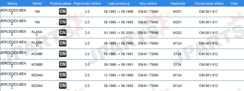 | Artykuł uzupełniający / informacja uzupełniająca: | bez uszczelki osłony zaworów |