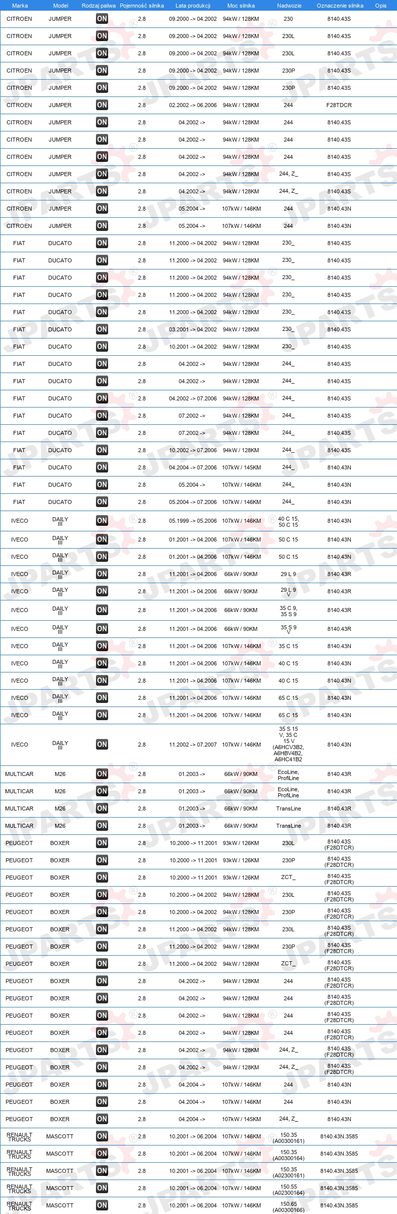 | Artykuł uzupełniający / informacja uzupełniająca: | bez uszczelki głowicy cylindra |