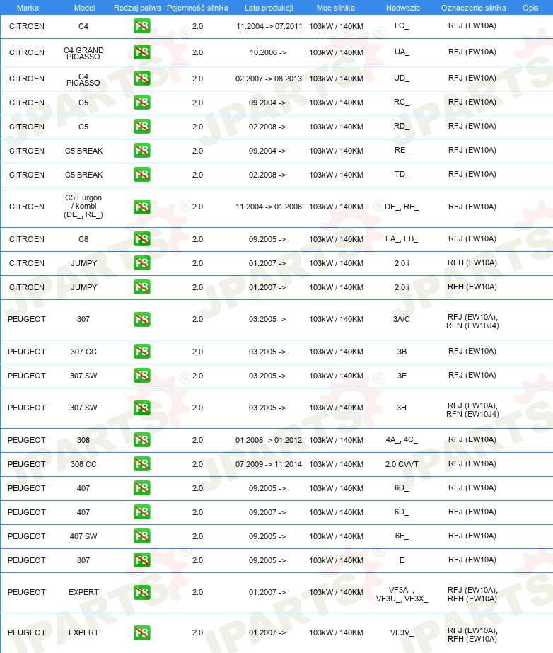 KOMPLET USZCZELEK GÓRA SILNIKA