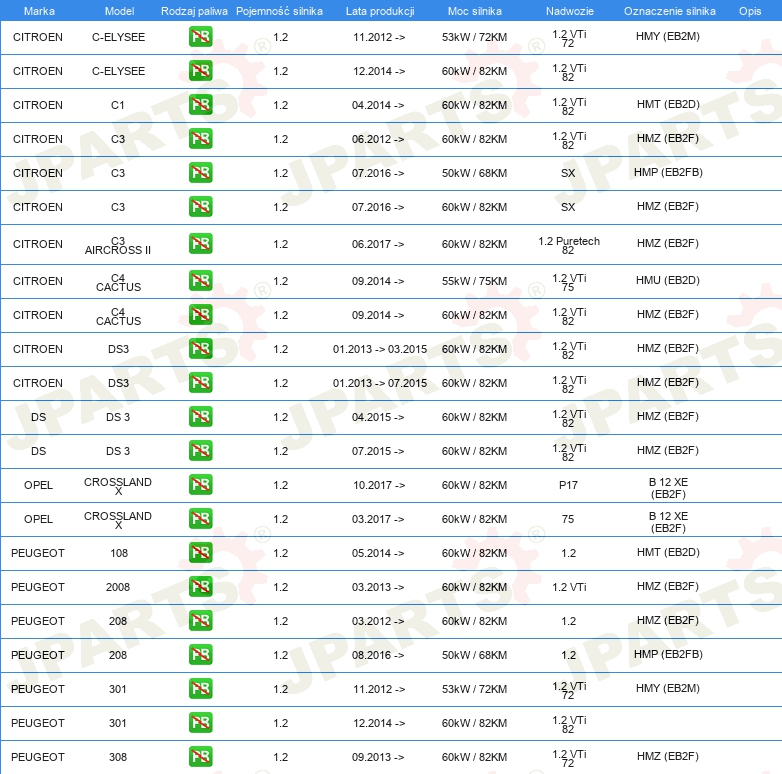 KOMPLET USZCZELEK GÓRA SILNIKA