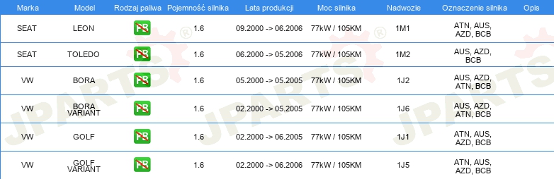| Artykuł uzupełniający / informacja uzupełniająca: | z wałkiem rozrządu z pierżcieniami uszczelniającymi |