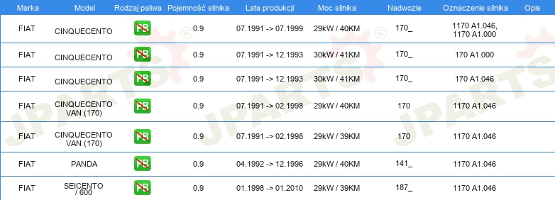 KOMPLET USZCZELEK GÓRA SILNIKA