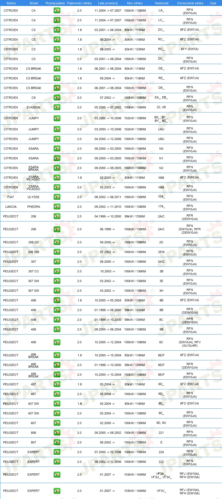 | Artykuł uzupełniający / informacja uzupełniająca: | z wałkiem rozrządu z pierżcieniami uszczelniającymi |